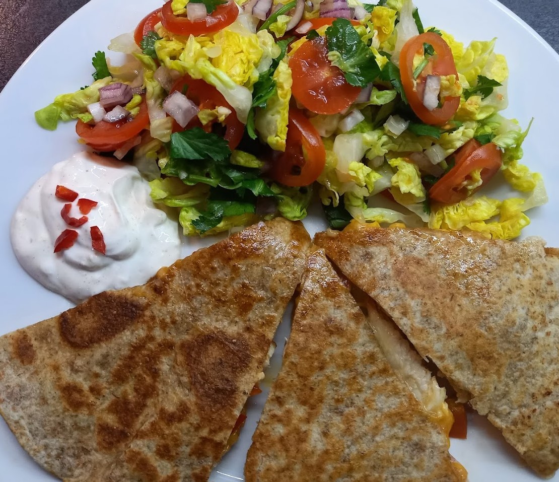 QUESADILLA S LEHKÝM SALÁTEM MÍSTO GUACAMOLE